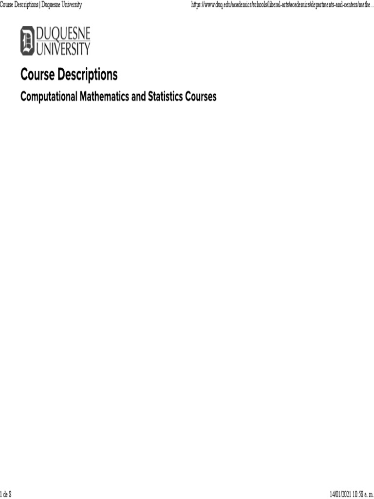 Course Descriptions Duquesne University PDF Machine Learning