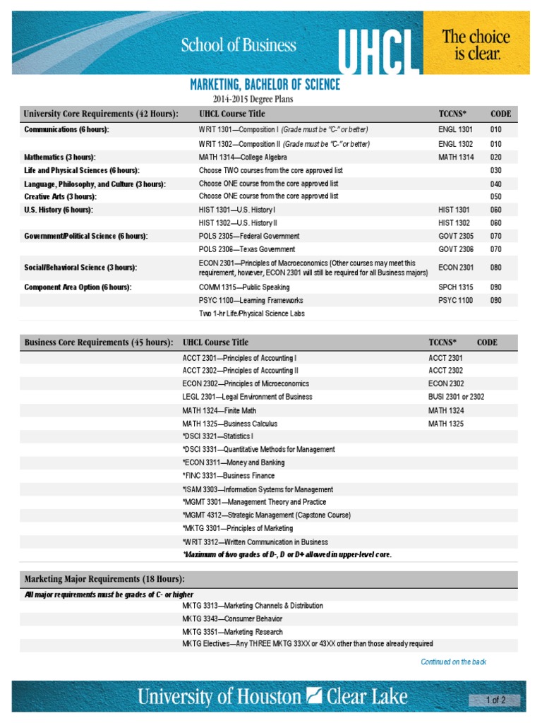 UHCL Degree Plan PDF Course Credit Academia